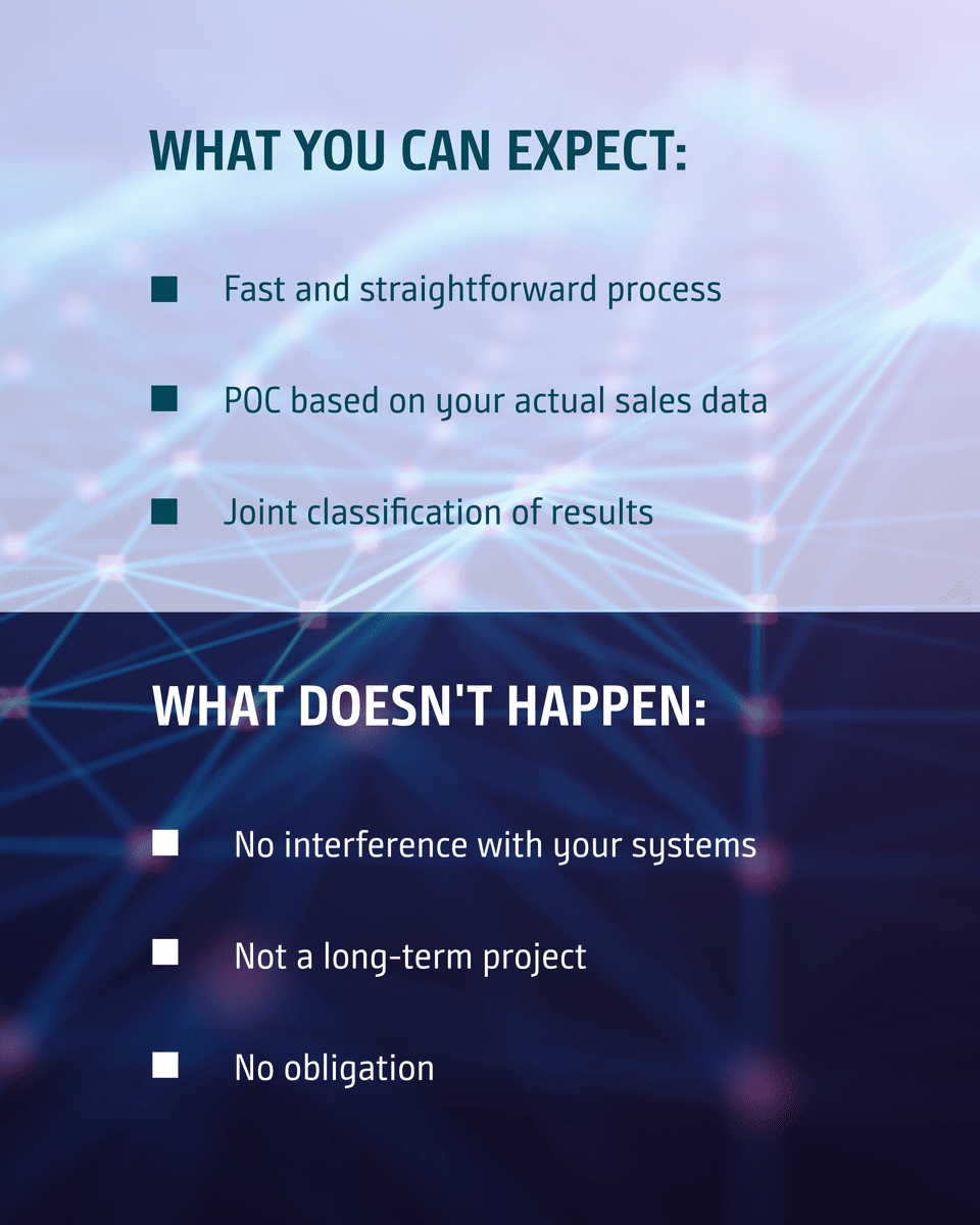 With a cost-effective and non-binding Proof of Concept (PoC), we provide measurable evidence of how your forecasting quality will improve with the Demand AI Forecasting Service.
